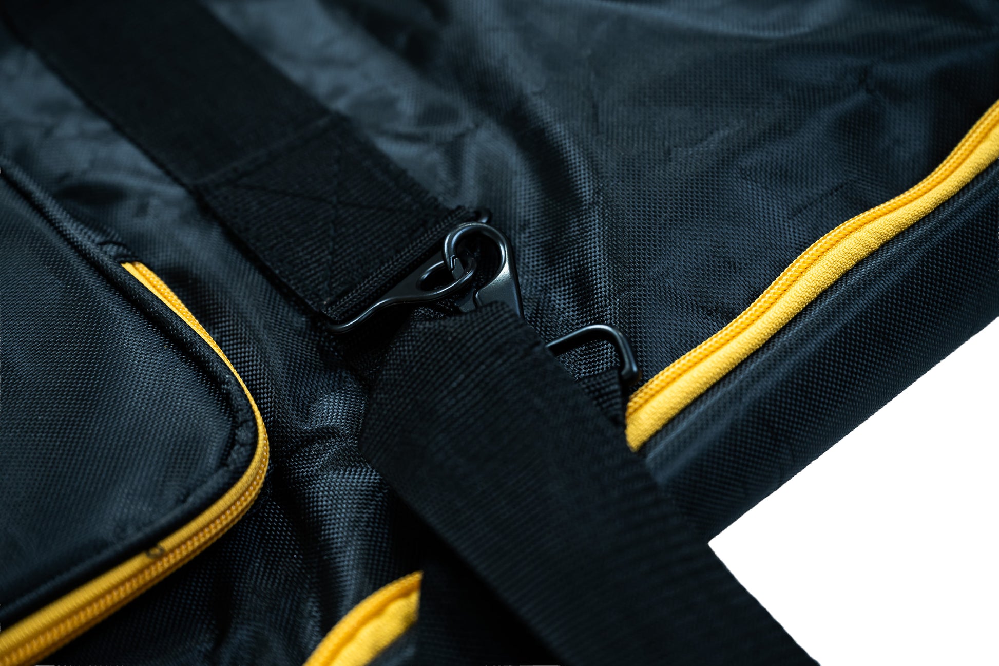 We’ve added a dedicated zippered pouch for spigots, adapters, and small tools, so you’ll never misplace essential accessories again. To ensure maximum protection, the exterior is fully padded, while high-quality YKK zippers keep your gear secure inside. The design is finished with our signature yellow perimeter trim, combining style with strength.